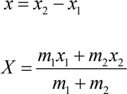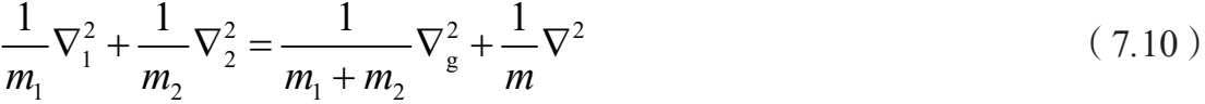 x 表示两个粒子的相对坐标, X 表示质心的坐标,其他坐标轴类似。在新的坐标中,我们得到
