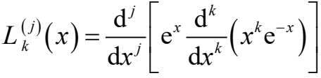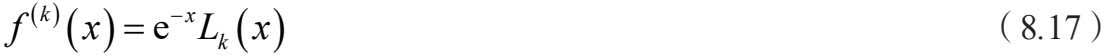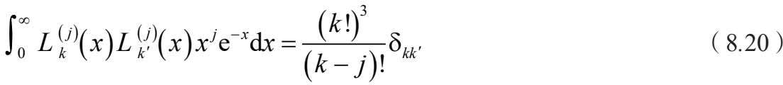 由公式(8.9),我们可以把级数解用拉盖尔 多项式表示。首先介绍一下拉盖尔多项式, k 阶拉盖尔多项式的微分表达式为