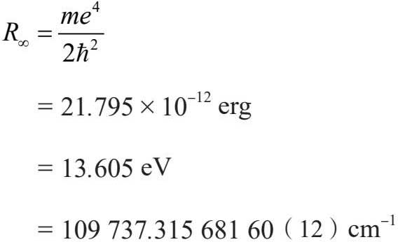 我们将其称为“里德伯 常量”(Rydberg constant),它的下标之所以是∞,是因为我们此时考虑的是原子核不动的情况,而只有当原子核质量为∞时,它才可能不动。