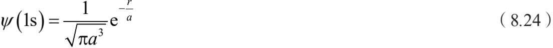 我们具体计算几个本征波函数的值。原子态 1s表示量子数取 n =1, l =0, m =0, m 为磁量子数,它是角动量在 z 轴上的投影,只能取分立的整数值,即