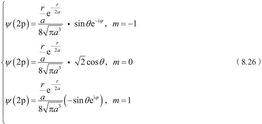 态 2p表示量子数取 n =2, l =1, m 可以取 3 个值,分别为 0,-1 和 1,所以此时有 3 个波函数