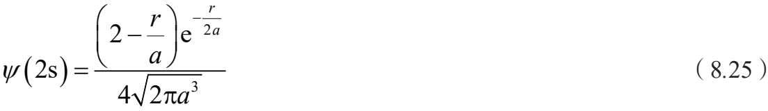 态 2s表示量子数取 n =2, l =0, m =0,波函数为