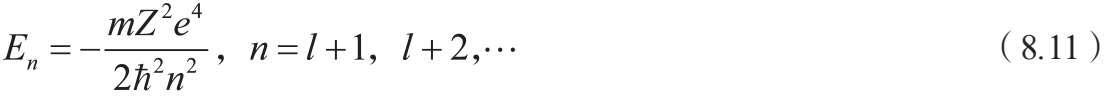 我们才能得到可以接受的解 (其中 n' 为非负整数) 。此时,无穷级数退化为多项式。由式(8.10)和(8.3)我们得到