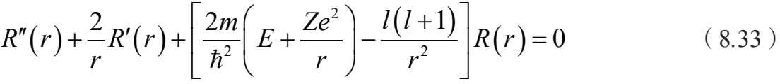 对于氢原子,原子序数 Z =1,径向波函数所满足的方程此处可以写为