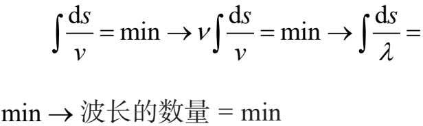 这表明,光线会走波长数量为极小值的路径。从波动光学的角度来看,这时光波是不动的,对应于干涉加强。
