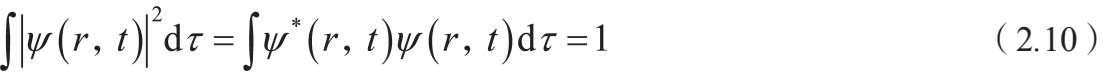 其中,d τ 为空间的体积元。上式表示,体系在空间各处出现的概率相加应该是 1。