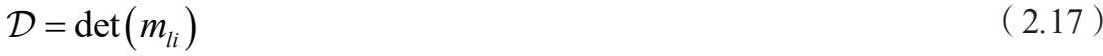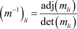 其中,adj( m li )表示矩阵元 m li 的代数余子式,分母为矩阵的行列式 [4] ,我们将其记为