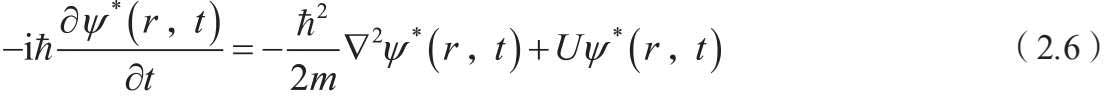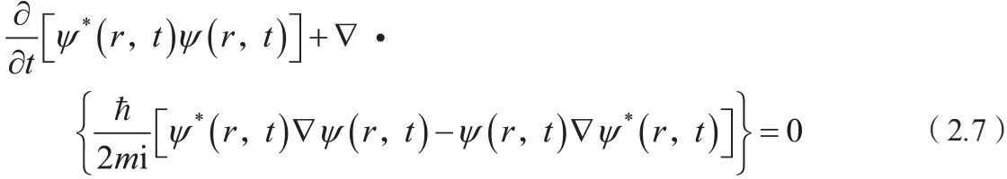 薛定谔方程(2.4),存在连续性方程。我们首先写出薛定谔方程的共轭方程,对方程两边取复共轭,得到