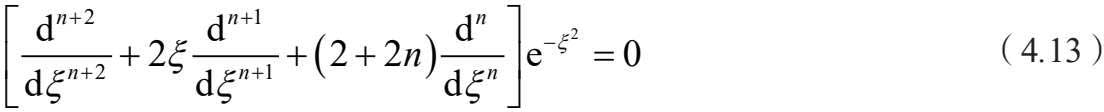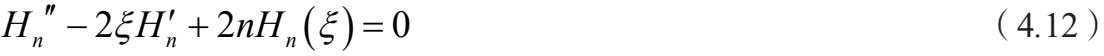 对于 n =0,我们验证它是满足上述条件的,然后由归纳法,我们发现对于 n =1,2,…,方程都是满足的。这证明厄米多项式就是方程的解。