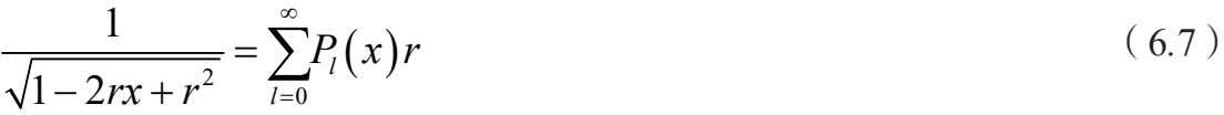 等式左边被称为“母函数”,右边的多项式为母函数按 r 的级数展开得到的,其限制条件为 0< r <1,勒让德多项式就是右边多项式的展开系数。