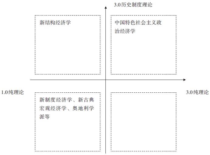 基于图1的两个视角,我们可以画出图2来进一步比较当代中国的各种经济学理论。