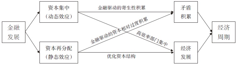 金融的深化发展,通过构建和完善金融市场、降低信贷市场信息不对称程度、减少金融摩擦,放松生产部门的信贷约束。抵押贷款机制的存在,既解决了生产循环中预付资本的问题,又在扩大再生产的冲动下,加速了生产资料在高效率部门的集中,这个过程既是资本在不同部门的再分配,同时也是资本向高效率部门的集中。资本再分配机制使得所有经济部门都进入到资产数量和价格的调整中,不断优化资本投入比例直到经济系统形成新的稳态为止;资本集中机制所具备的动态效应,又使得资产价格处于上升通道,乐观的预期形成了经济发展的正反馈。但是在资本积累、经济发展的背后,由于资本集中和资本再分配的二重性,以及对信用手段和金融中介的依赖,一方面导致产业资本和金融资本的联合,金融资本的逐利性会使得资本从生产性积累向寄生性积累偏移,进而产生过度金融化甚至垄断金融资本等问题;另一方面导致生产比例的失衡,由信用所创造的虚假需求推高了生产过程中的资本构成,不仅带来了效率损失,也埋下了再生产循环实现的矛盾和危机。