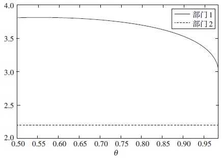 作为高效率企业的收益率不断下降。在金融发展水平θ值不断变大的情况下,为了保证方程恒等,方程左侧资本构成k