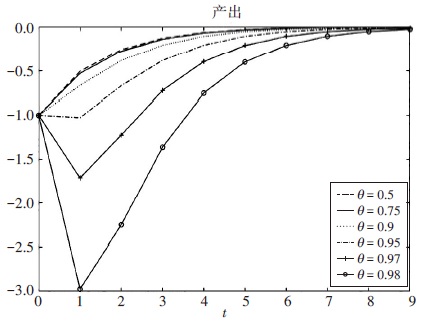 由于无法承诺还款,投资者面临抵押限额的限制,债务额b t +1 不得大于其资产的市场价值q t +1 k t 。本文引入θ,解释为金融发展的程度,取值越大代表金融发展程度越高,金融市场越发达,由信息不对称等带来的金融摩擦也就越小,授信额度越高。