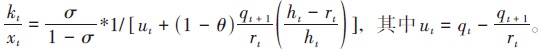 表示的是资本所有者t期提前收取的租金,就是说ut也可以理解为持有固定资产的机会成本,因为在模型运行中固定资产持续流向高收益的部门,其机会成本可以视为不变。在资本集中的过程中,利率水平r