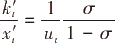 通过对模型一阶最优条件进行整理,可得到两个部门的资本构成比,即k t /x t 。首先分析高效率部门,可求得生产企业固定资产投入与劳动力投入构成之比为: