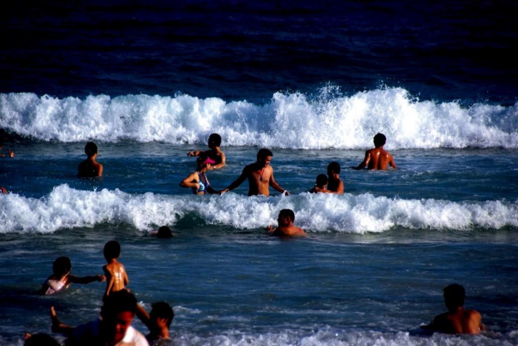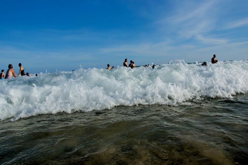 低机位拍摄的海浪,给人有一定的视觉冲击感,拍摄时注意相机安全的同时,摄影师要俯下身尽可能低于海浪。拍摄后的视觉上也能给人一种几乎零距离看浪花的感觉。