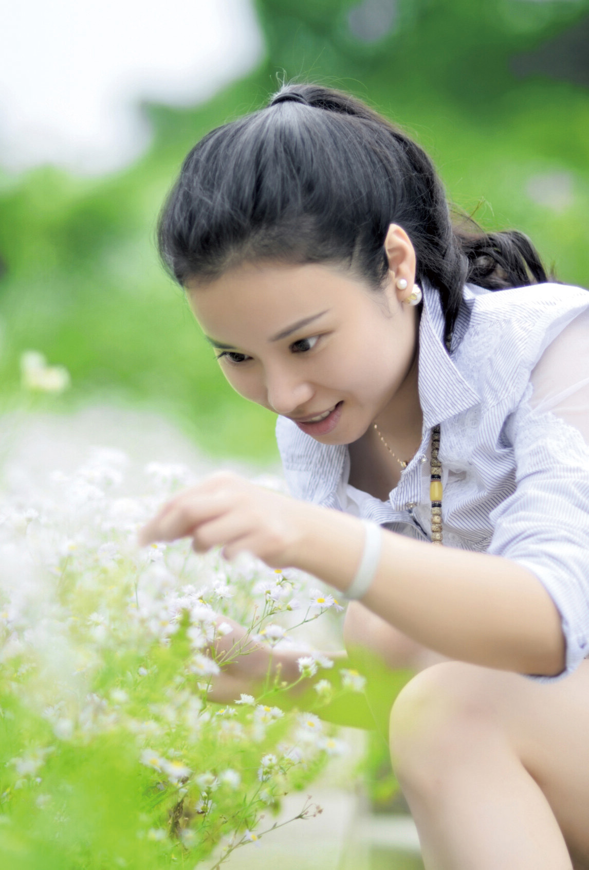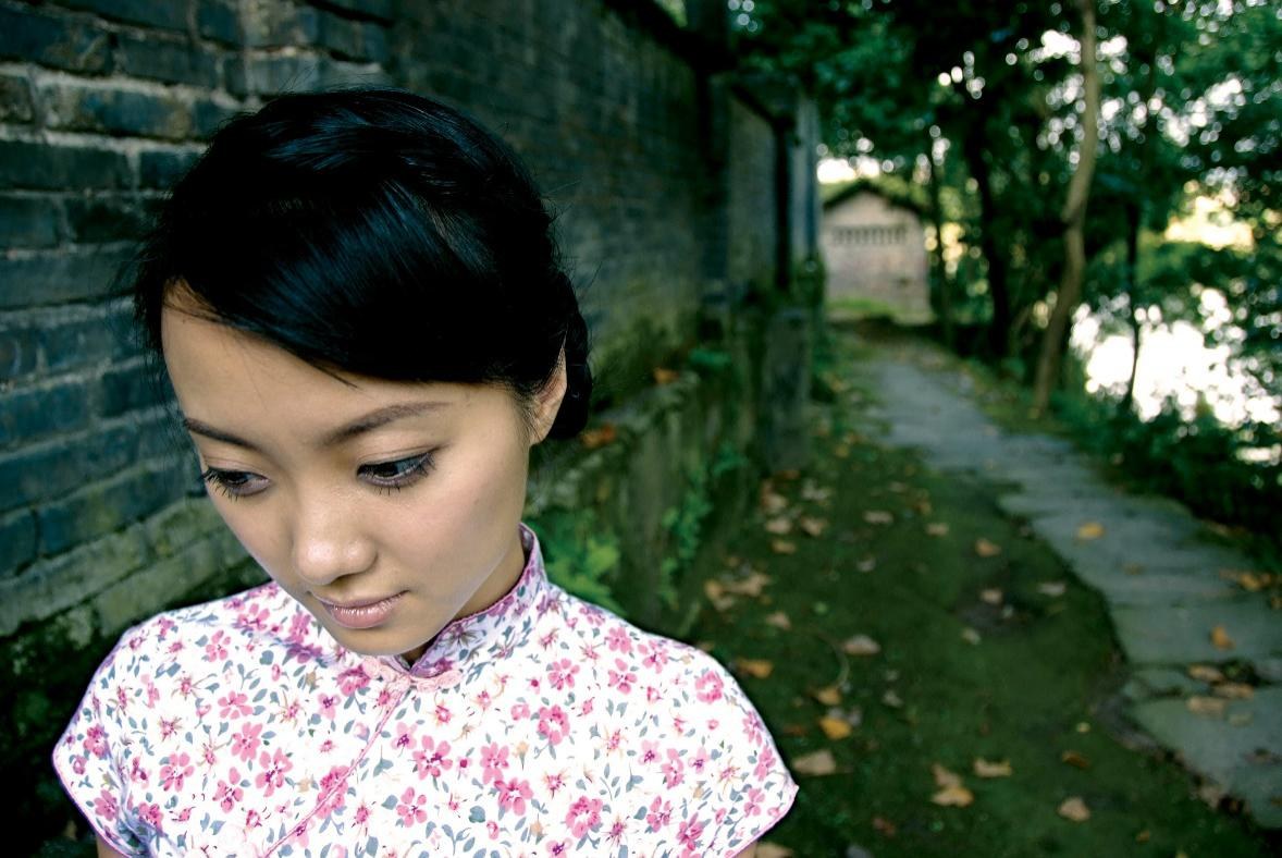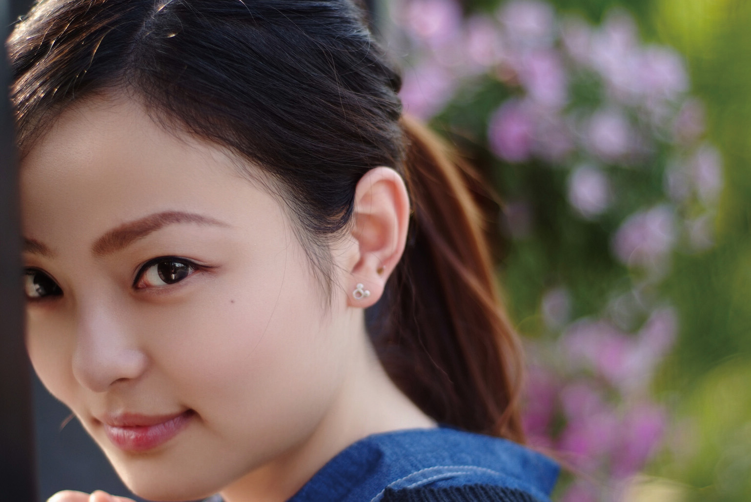 高机位拍摄人物头像照,尤其是拍摄女性,很容易带给我们美的享受——瓜子脸。这是由于镜头的成像原理——近大远小,当我们俯视拍摄一位女性的头,她的下巴距离镜头较远,加以“近大远小”的成像原理,最终成像后会显得比实际看到的更小,那么瓜子脸很容易就拍摄出来了。