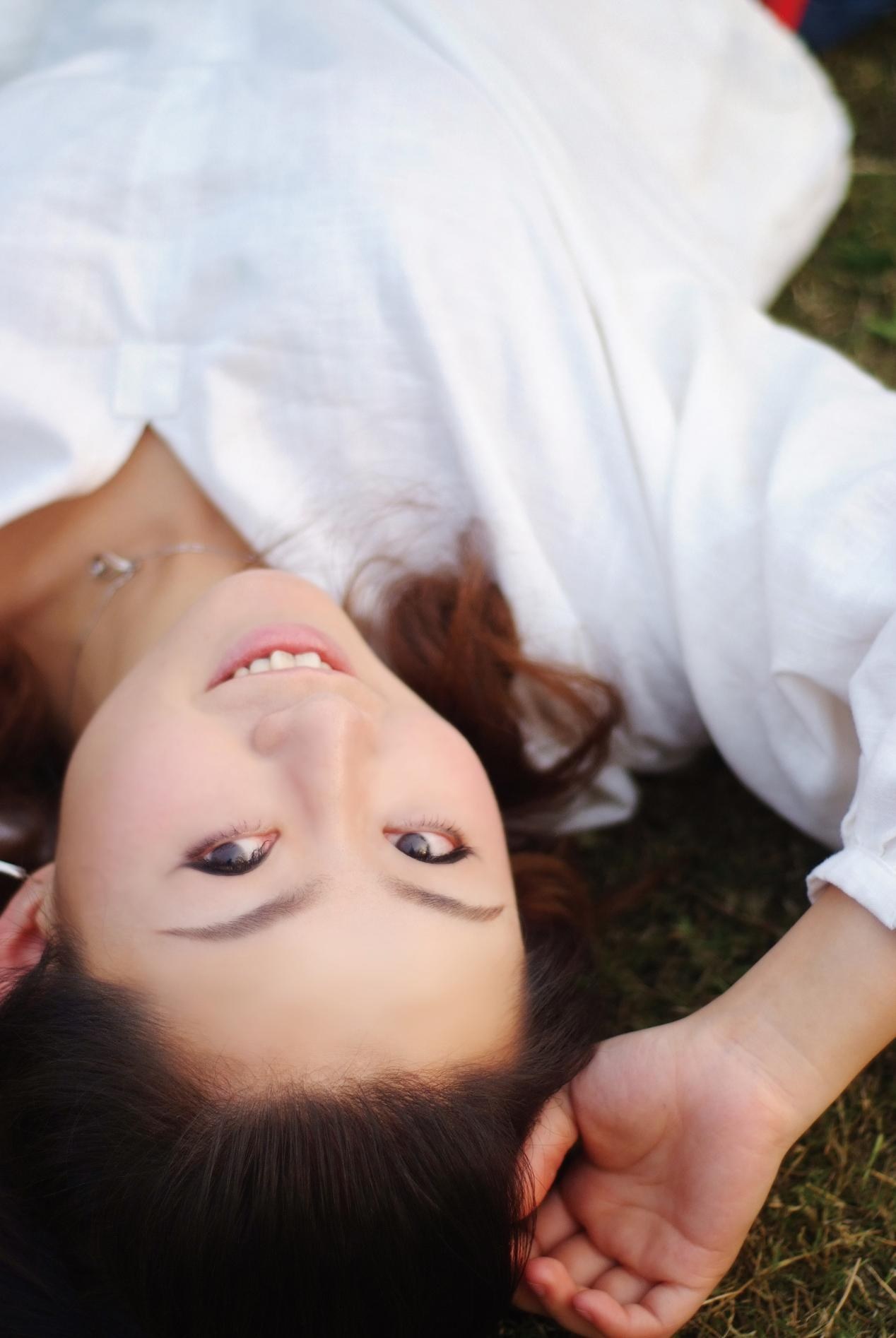 《人物躺姿俯拍》 摄影:王美木(高机位俯拍躺姿人物照更易修饰脸形,崭新的视觉冲击力)