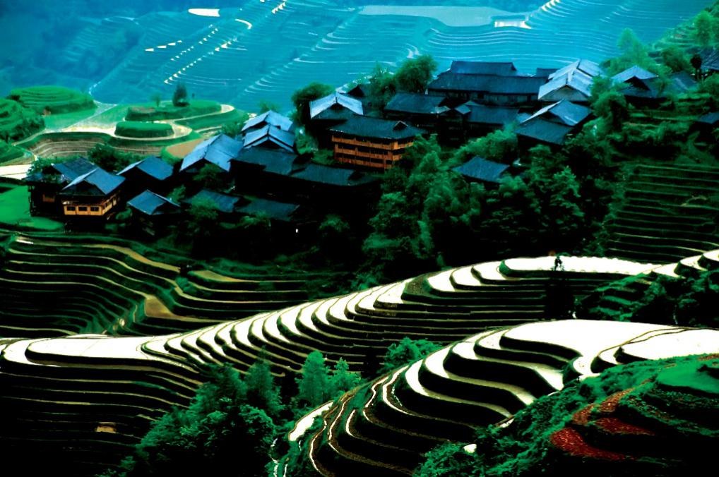 风光梯田,高机位拍摄很常见,我们选择一个山,然后对山下的风光进行俯拍。这样的俯拍视觉,也能给我们“一览众山小”的心理感受,能够带给我们一种可以看清全貌,甚至是把握全局的心理感受。