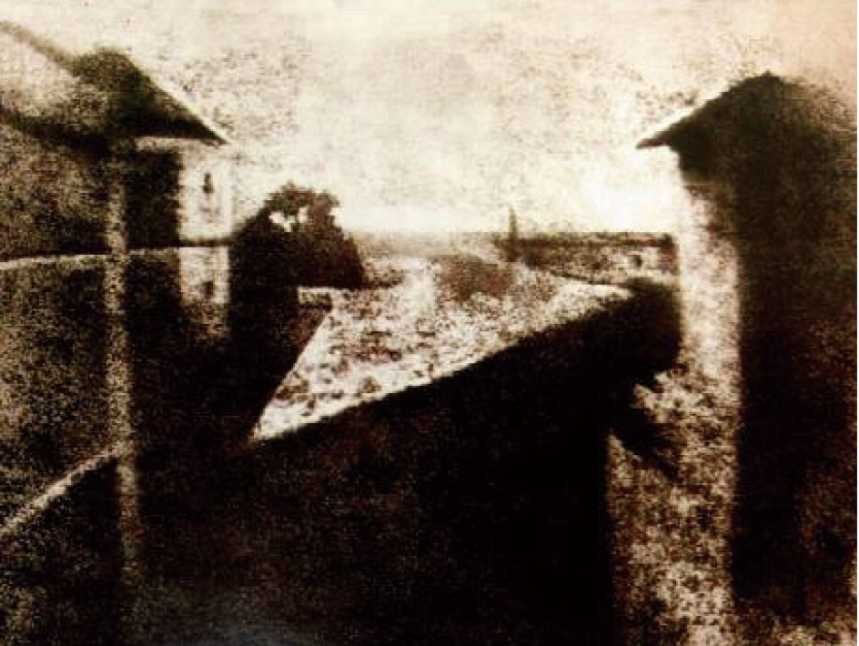 1826年的一天,法国人约瑟夫·尼埃普斯在房子顶楼的工作室里,拍摄了世界上第一张永久保存的照片。他当时的制作工艺是在白蜡板上敷上一层薄沥青,然后利用阳光和原始镜头,拍摄了窗外的景色,曝光时间长达八小时,再经过薰衣草油的冲洗,才获得了人类拍摄的第一张照片——《窗外景色》。尼埃普斯的摄影方法比达盖尔早了十几年,实际上应被称为摄影术的发明者,只是由于尼埃普斯为保密而一直拒绝公开,也就未被予以公认。