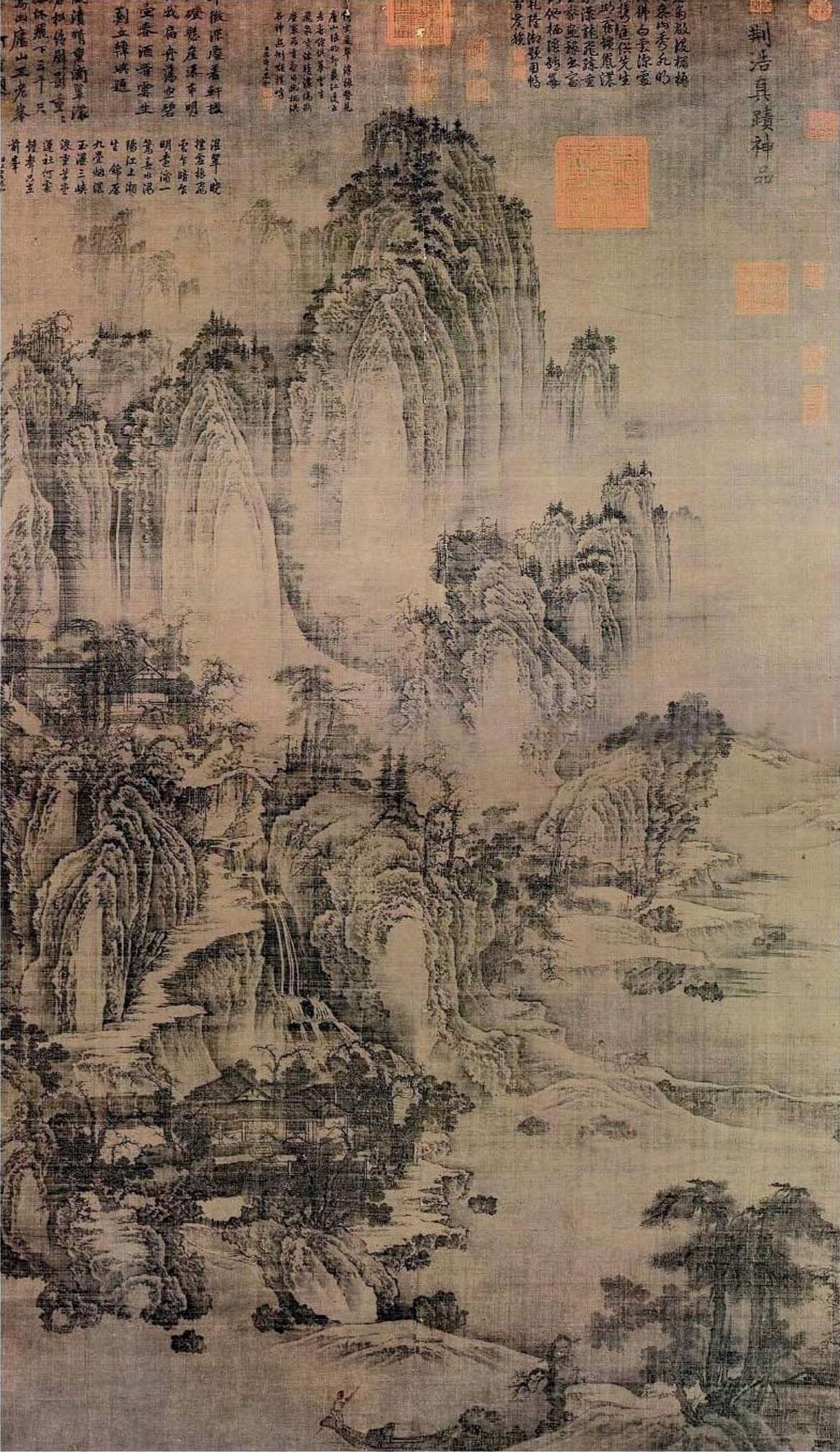 五代·荆浩,匡庐图,卷轴,绢本,墨色,185.8cm×106.8cm,藏于台北故宫博物院。