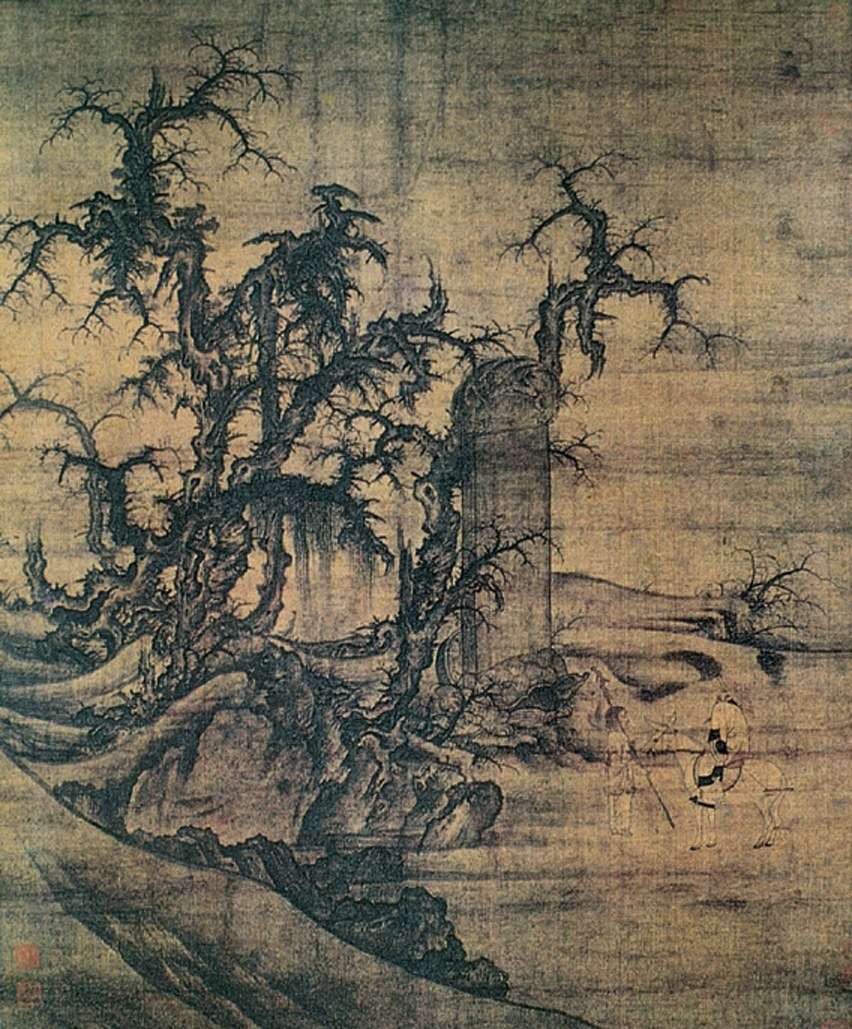 宋·李成、王晓,读碑窠石图,轴,绢本,墨色,126.3cm×104.9cm,藏于日本大阪市立美术馆。