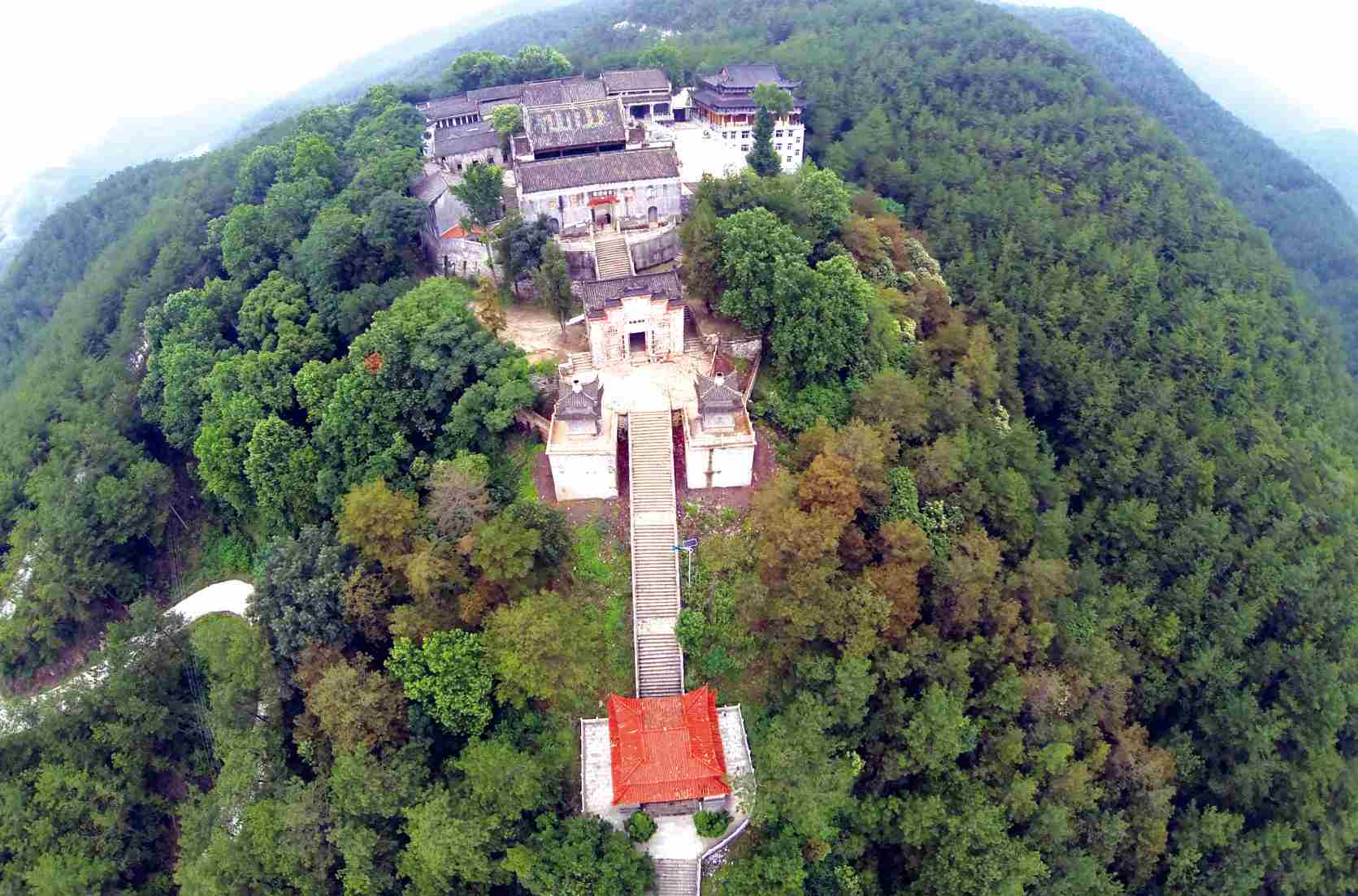 麻城五脑山,重庆晨报航拍工作室空中拍摄的帝主庙。这种依山而建的寺庙在重庆随处可见(晨航 摄)