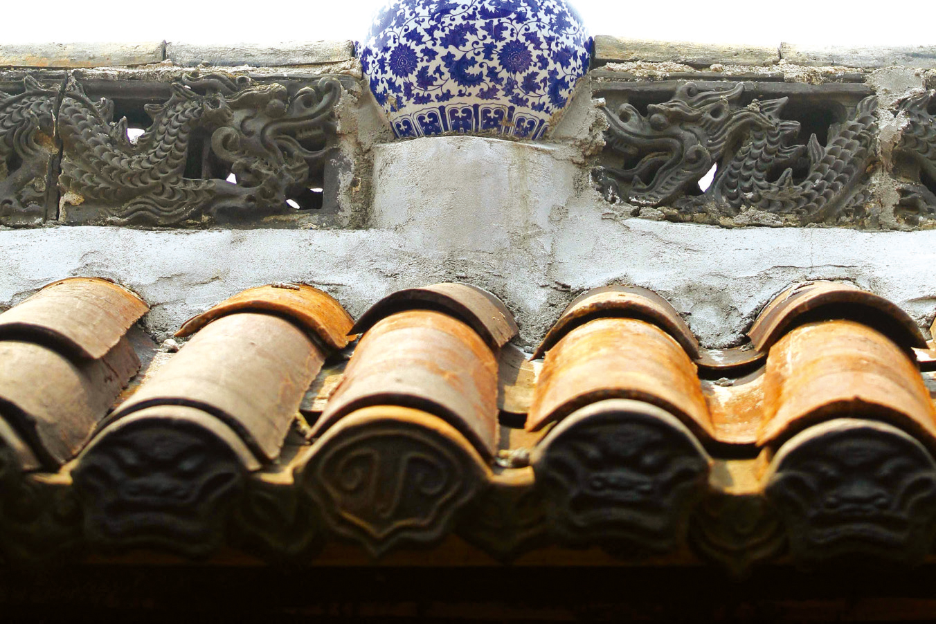 余道士捧出几片翻修屋顶时掉下的断瓦,虽然蒙上灰尘,它们的色泽仍然鲜润。轻轻一敲,声音清脆。“这瓦片是用江西景德镇的高岭土烧制,再上色而成的。”