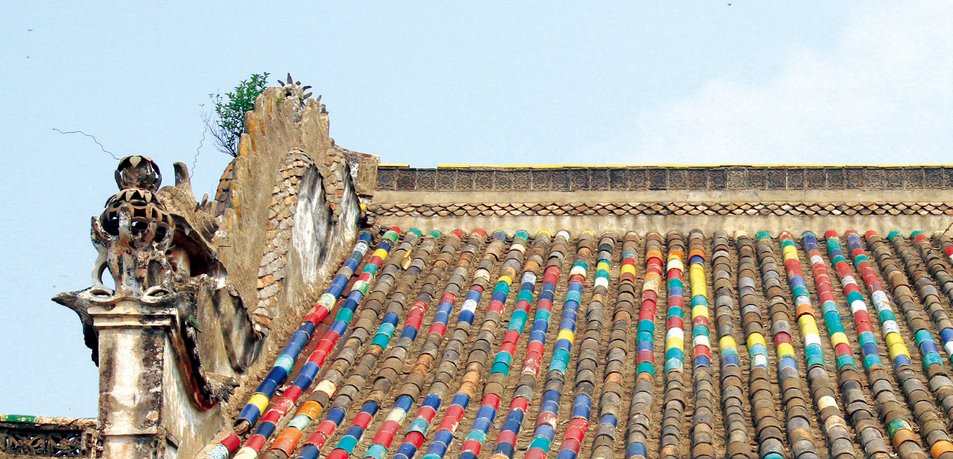 麻城五脑山帝主庙,大殿屋顶上的彩瓦(苏思 摄)