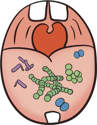 人体的口腔中,生存着至少700种微生物,这些微生物盘踞在口腔的各个角落,相互依存又相互牵制,维持着口腔中的微生物平衡。口腔里常见的细菌有葡萄球菌、链球菌、乳酸杆菌、厌氧链球菌、甲型链球菌、表皮葡萄球菌、奈瑟氏菌等。由它们所构成的口腔微生物菌群是除了肠道菌群外,人体内的第二大微生物势力。