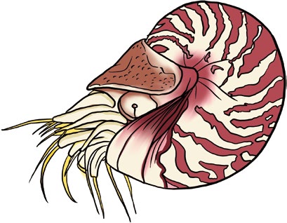 鹦鹉螺是肉食性动物,它们的饮食清单包括但不限于小鱼、小虾和底栖的小蟹。在奥陶纪,鹦鹉螺正处于鼎盛期,一些庞大的类群不像今天的鹦鹉螺这样呈螺旋状,而是直挺挺的如同号角,长度可达10米左右,是当时的“顶级掠食者”,三叶虫和海蝎都是它们的食物。
