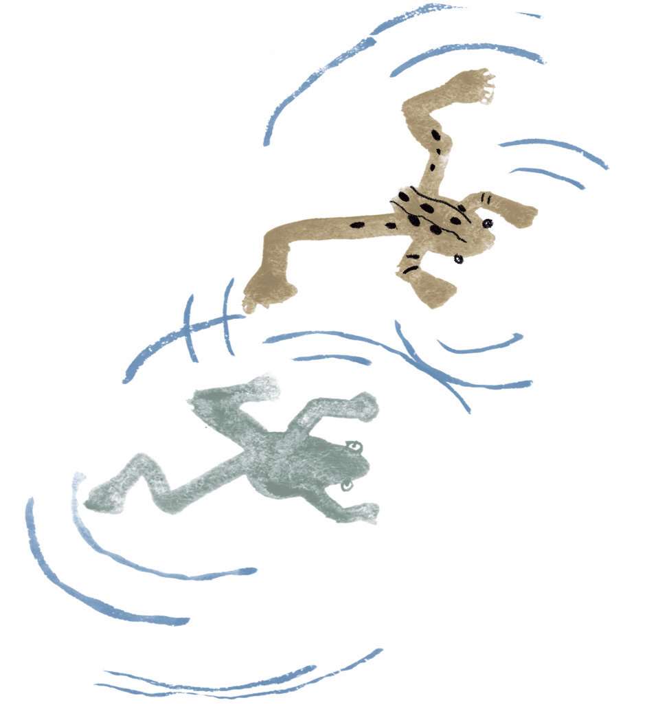 花青蛙问身边的绿青蛙:“我问你,刚才为什么池塘黑漆漆的一片?”