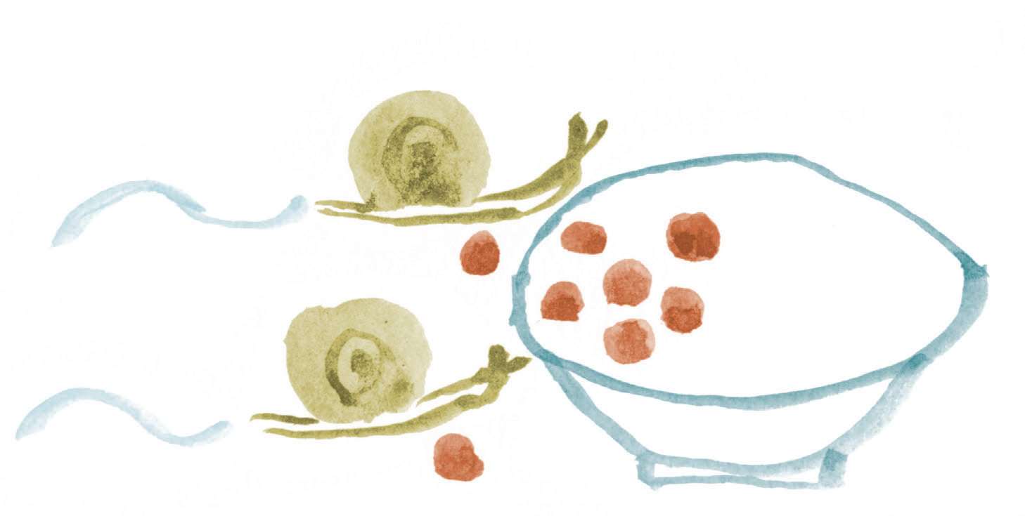 蜗牛兄弟把脖子伸长,伸长,探到碗里,一二三,各自卷起一粒猫饼干就跑。