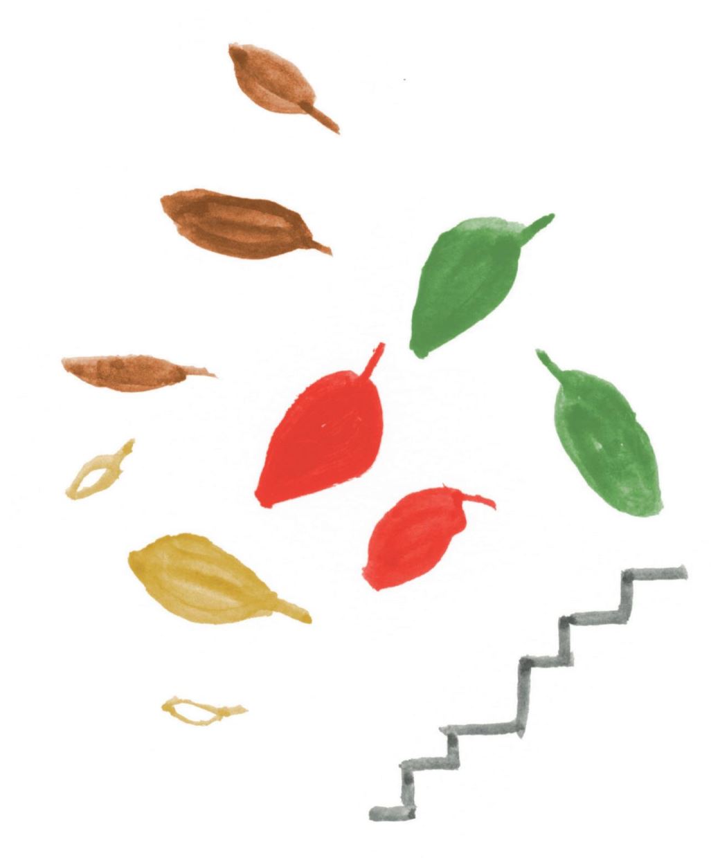 风喊了个“一,二”,叶子们便同时往台阶上蹦。黄叶子们蹦到了第一个台阶上,红叶子们蹦到了第二个台阶上,青叶子们蹦到了第三个台阶上,花叶子们蹦到了第四个台阶上。