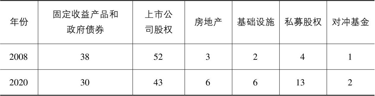 表2.12 全球主权财富基金的资产配置(%)