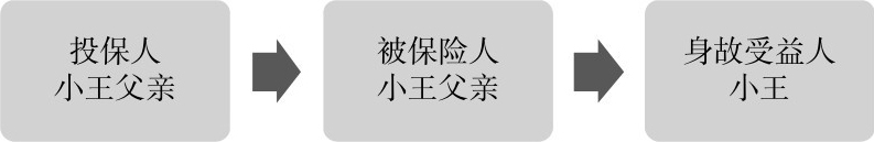 方案二:小王父亲作为保单的投保人和被保险人,小王自己作为保单的身故受益人。如图1.5所示。