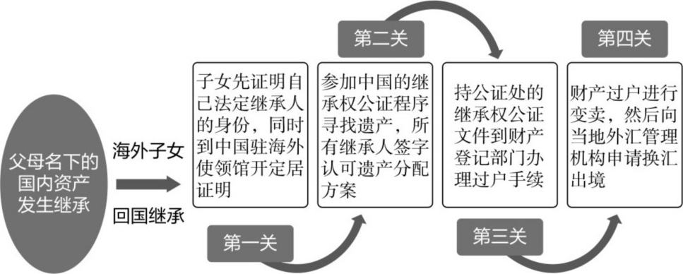 图1.7 定居海外的子女回国继承父母遗产的流程