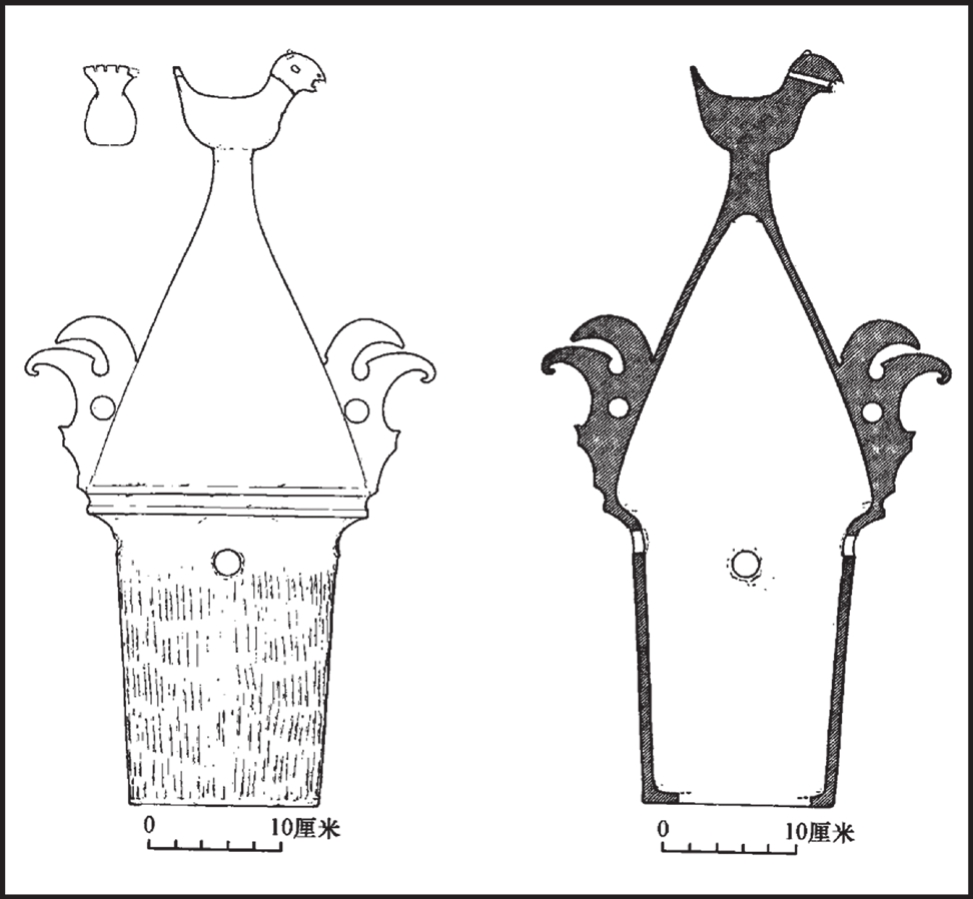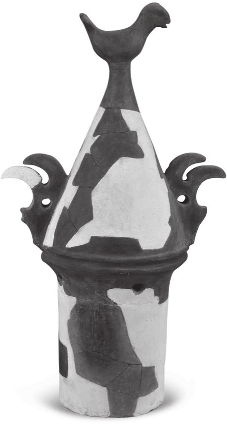 结合该遗址内非常丰富的宗教祭祀遗迹,鸟形器是尉迟寺先民崇鸟、祭祀天(或即太阳神)的礼仪性器物。从鸟形神器的外观来看,鸟形简约,高高站立在一个圆筒形器上,翘首远眺,与良渚文化玉礼器上的“鸟立高台”图案非常相似,有异曲同工之妙,所以应当源于良渚文化,是与太阳神崇拜相关的器物。进而言之,尉迟寺遗址的鸟形器,或许可被视作史前时代鸟崇拜文化交融的一个缩影。