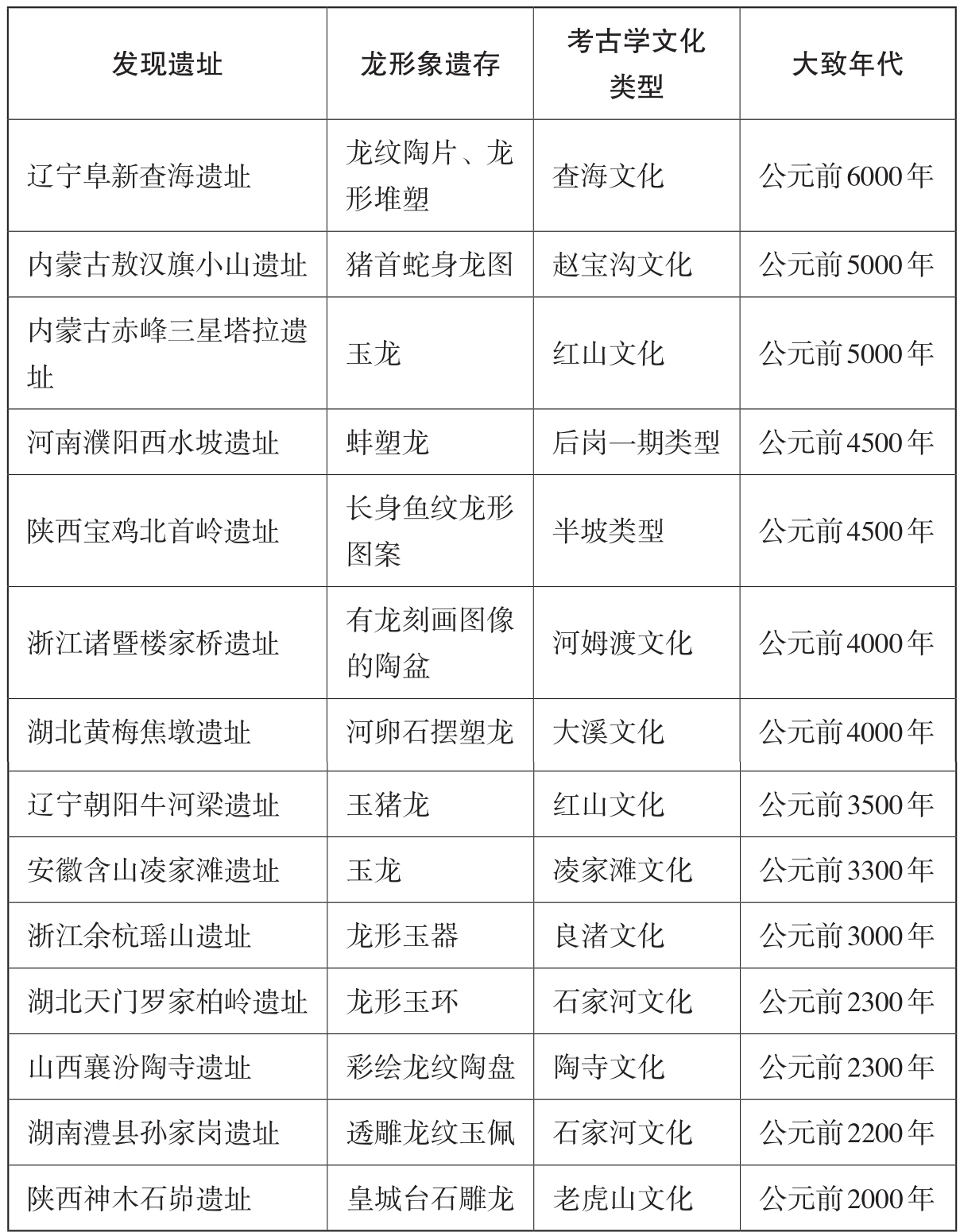 表1 国内新石器时代晚期主要龙遗存一览表