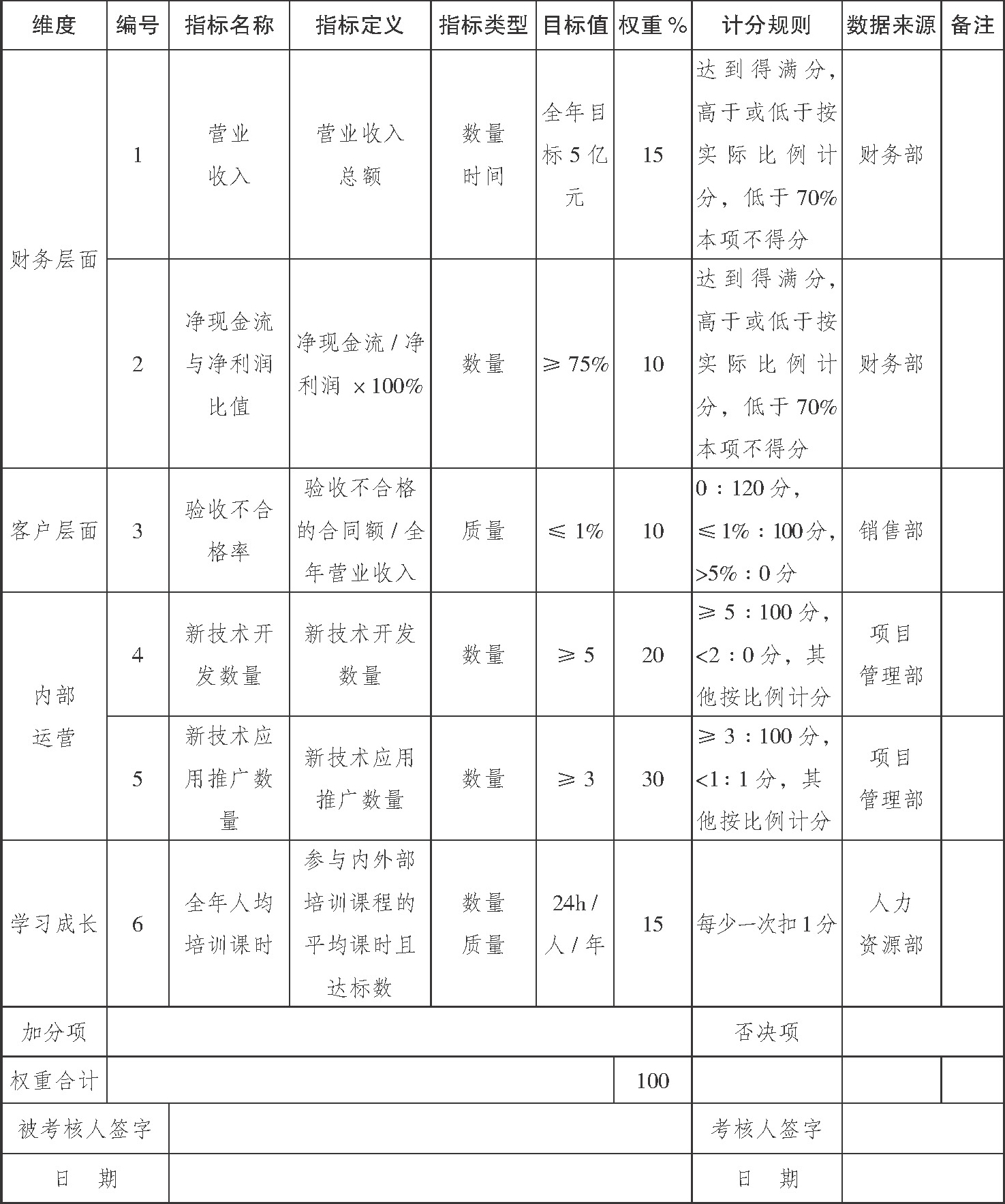 同时,在分解关键绩效指标时,为聚焦企业战略目标的实现,我们往往会将关键绩效指标控制在8个以内,选取对业绩目标实现影响较大的关键指标作为年度公司级关键绩效指标。