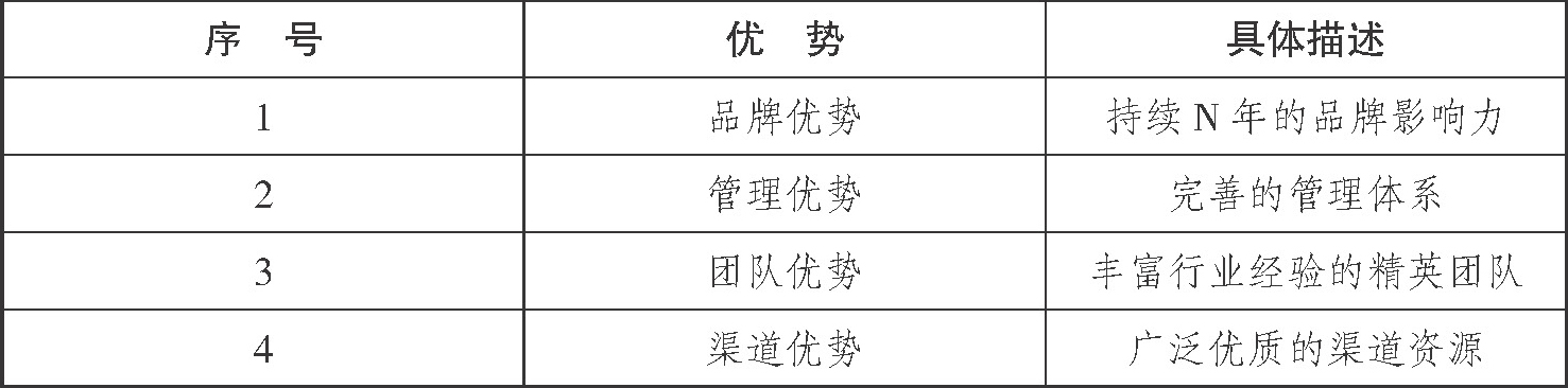 发现优势环节的核心,是通过共创的方式,找出本公司在哪一方面相较于竞争对手更为突出,能够创造超出竞争对手的收益。中高层管理者通过研讨的方式共同寻找出企业优势,能够帮助中高层管理者树立对公司未来持续发展的信心,从而激发持续奋斗的事业雄心。结合企业实际,自身优势包括但不限于以下几个方面: