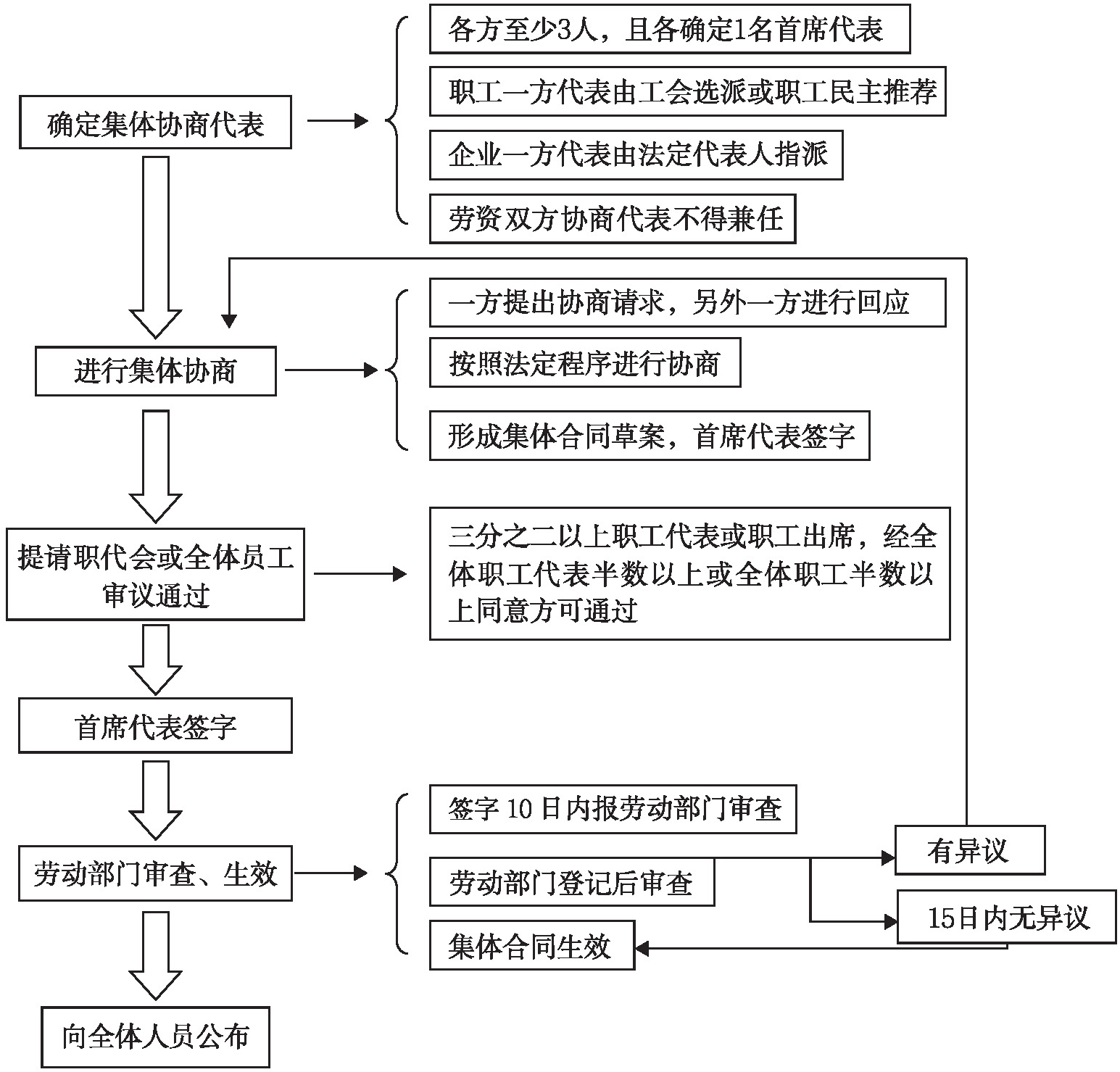 在集体协商会议中,协商代表应各自发表意见,展开充分讨论并归纳意见。当意见达成一致时,双方协商代表拟定集体合同草案,由双方首席协商代表签字。