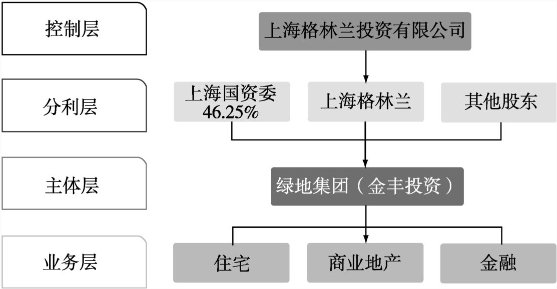 上海格林兰投资(有限合伙)作为持股平台与上海国资委等其他股东一同作为上市公司的上层股东,实现其股东利益。最后,绿地集团作为主体层通过下设的住宅、商业地产、金融等实体板块实现经营。