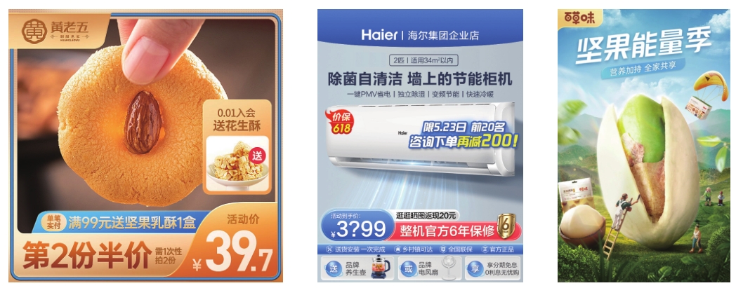 电商是电子商务的简称,视觉设计是指利用图像、文字、颜色等视觉元素进行图文设计,可以达到信息传播的目的。电商视觉设计是指在网页设计和平面设计结合的基础之上,加入用户体验和人机交互,通过互联网传播信息,进行商品销售相关内容的设计,如图1-1所示。