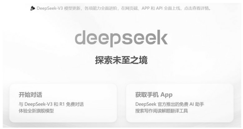 (1)打开浏览器,在地址栏输入DeepSeek官网地址,即可打开DeepSeek首页,如图1-1所示。