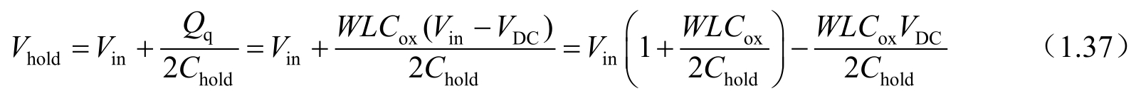 需要指出的是,虽然电容 C 1 在保持阶段两端电压被充电到 V DD ,但在采样阶段由于寄生电容的存在,使得保持在电容上的电荷发生电荷分享。发生这个电荷分享后,电容两端电压变为 V C ,即