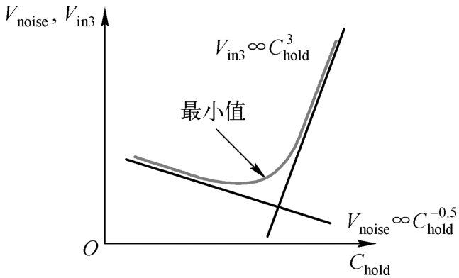 图1.36 失真与噪声电压相对保持电容的变化趋势