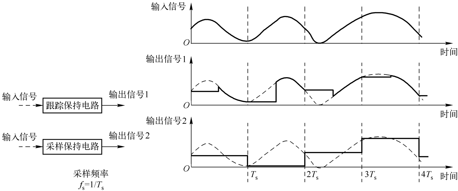 图1.14 跟踪保持电路和采样保持电路的输入和输出信号的变化