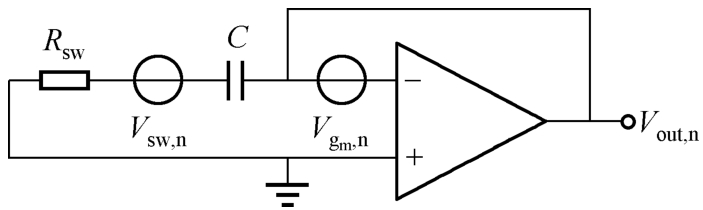 在反馈相位之后,电容的噪声电压包括两部分:采样噪声电压及运算放大器产生的连续时间噪声电压。这些噪声电压将会在下一个周期中被采样。开关电容电路在一个周期内的开关动作会产生多个独立的噪声,而这些噪声能量最终相加,恶化该电路性能。